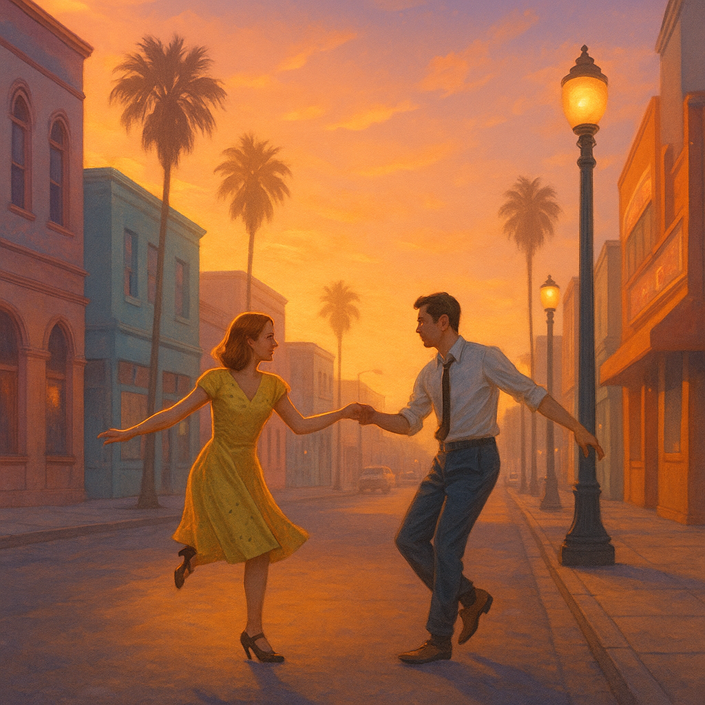 그러나 영화는 설렘을 유지하려면 개인적 열정이 필요하다고 강조합니다. 미아와 세바스찬이 서로의 꿈을 진심으로 응원하는 태도는 ‘관계의 건강한 긴장감’을 보여주고, 이는 20대 커플이 흔히 겪는 ‘서로의 목표를 지지할 것인가 포기할 것인가’의 갈등에 해답을 제시합니다. 또, 5년 후 재회 장면에서 펼쳐지는 ‘에필로그’ 판타지 시퀀스는 “만약 우리가 함께였다면?”이라는 상상 속 설렘을 음악·색채·안무로 풀어내며 현실의 아련함과 이상향의 달콤함을 동시에 선사합니다. 결국 영화가 전하는 설렘은 ‘사랑과 예술이 만나 창조되는 짜릿한 공동체감’이며, 이는 20대에게 가장 강력한 동력으로 작용합니다.